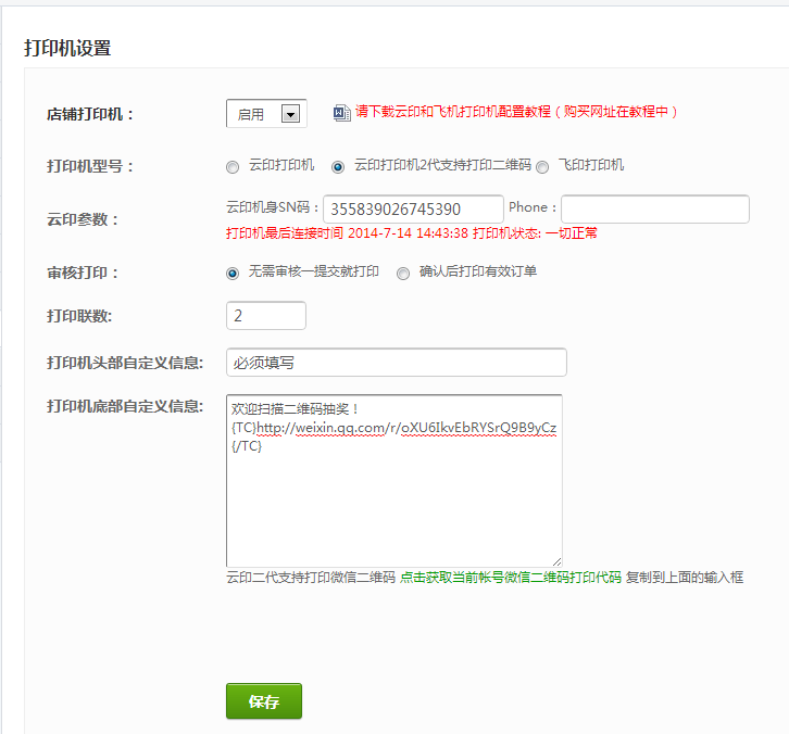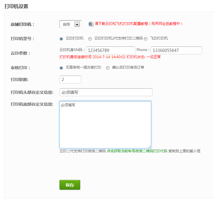 注意:云印2代打印机的SN就是打印机底部条形码下的数字。设置二型打印机无需填写手机号!