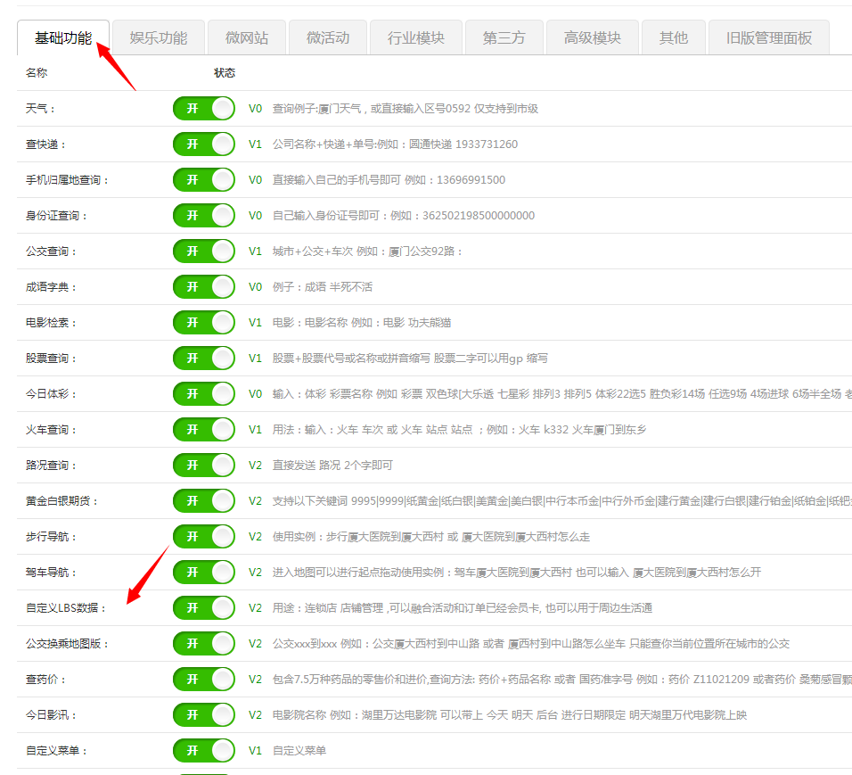 2.功能管理里面开启 自定义LBS数据 功能
