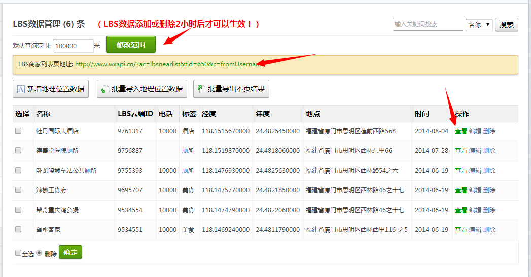 目前默认检索附近 5000米内的数据!