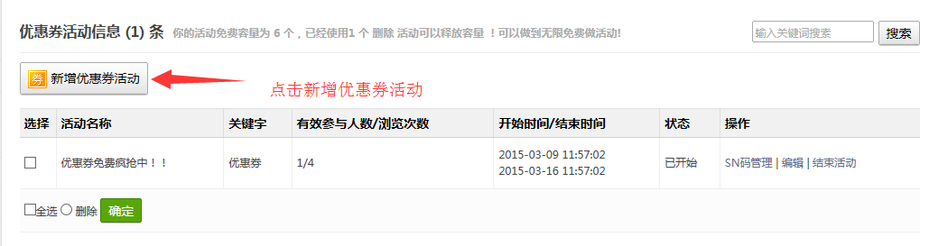 第三步:点击新增优惠券活动