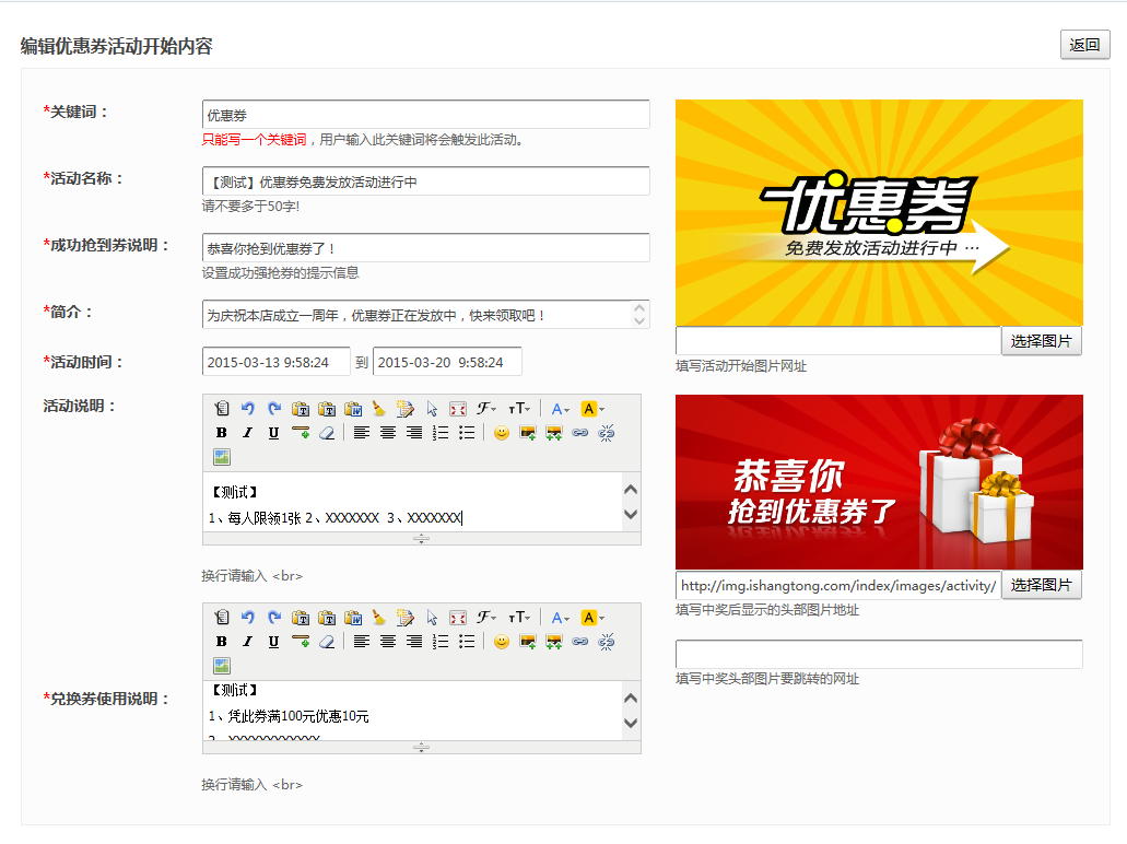 1、编辑优惠券活动开始内容