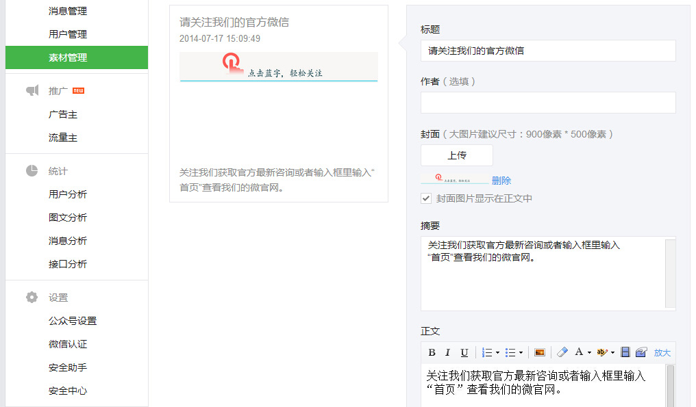 摘要和正文填写:发送 关键词 参与(报名)活动