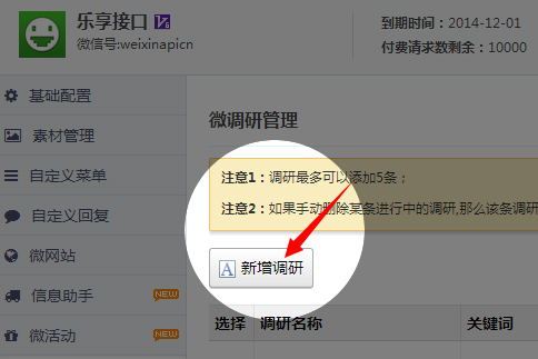3.点击新增调研。
