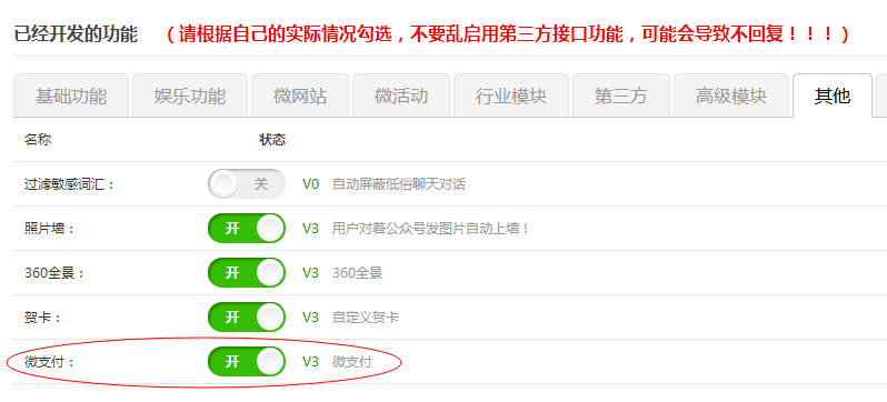 勾选微支付功能