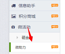 第二步:刷新网页,在网站左侧的微活动下找到微助力功能