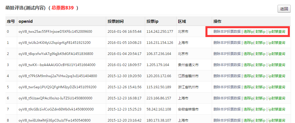 鉴于现在有专业的团队,设立不同的微信群,邀请一些微商羊毛党在群里做任务,兼职赚钱,所以以往可以根据如果每人每天只允许投1票情况下,可以观察通一个IP是否相同的很多来判断,目前是无法准确判断是否刷票,因为一切微信号都是真实的。