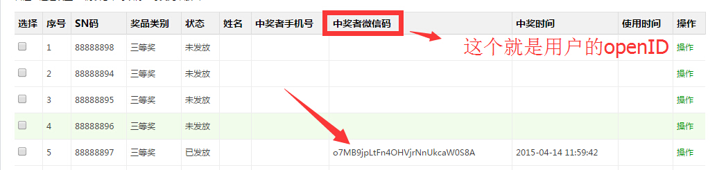 该openid就可以用来内定该用户为中奖人