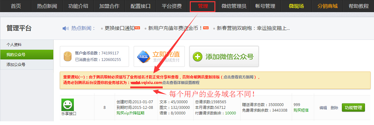 由于腾讯限制必须填写了业务域名才能正常分享和查看!(否则被重新排版)务必到腾讯后台设置你的业务域名!(未认证的公众账号不能设置公共域名,只能被腾讯重新排版)