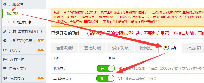 第一步:开启二维码投票功能(只有VIP4才能开启)