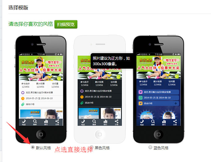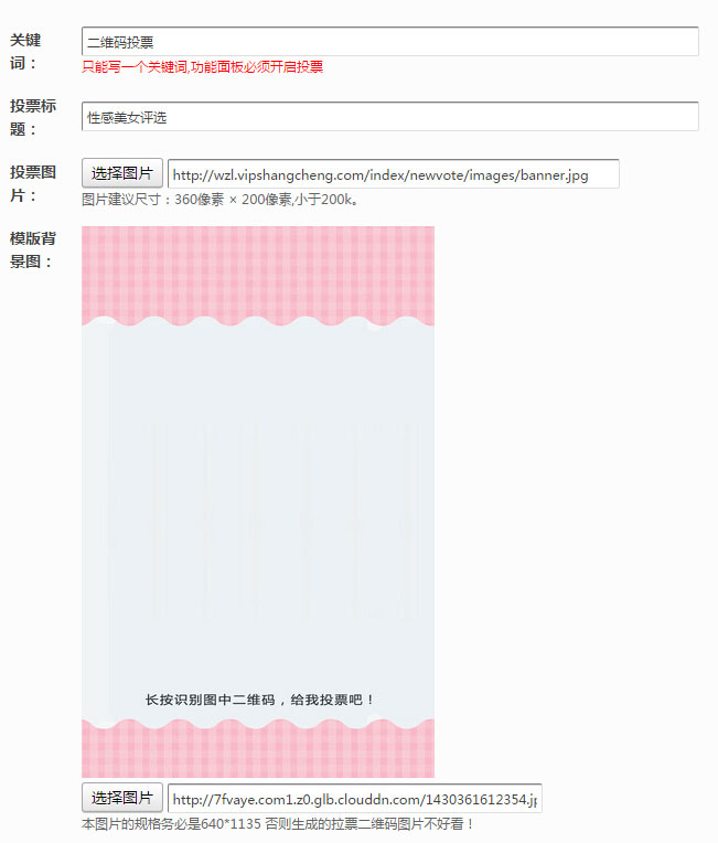4.选项图片的规格务必是430*570 否则生成的拉票二维码图片不好看!