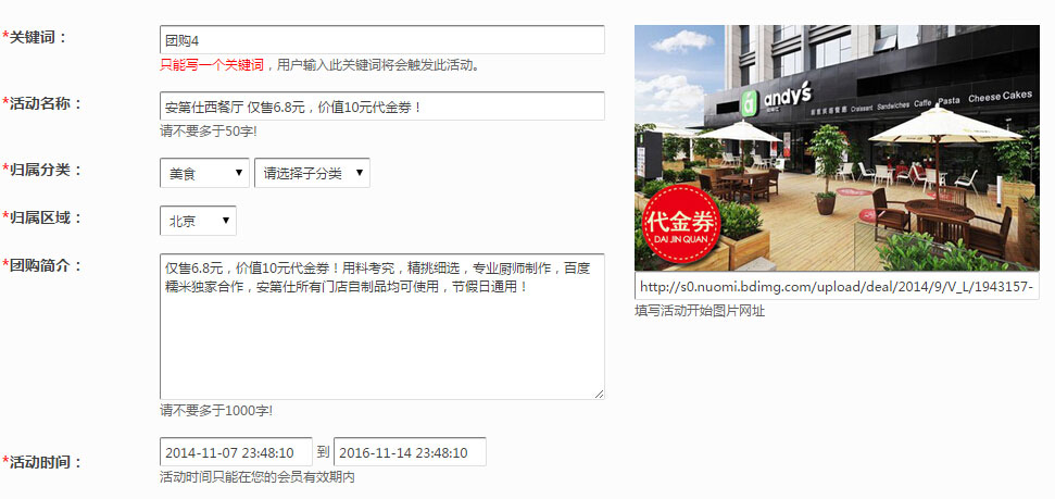 第三步:点击新增团购按钮