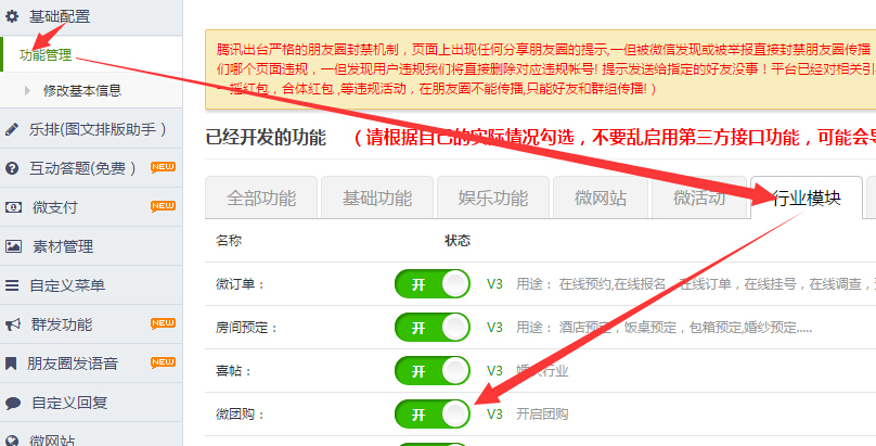 第一步:在微活动下找到微团购的按钮,开启微微团购功能(微团购功能只有VIP3才能开启,VIP6用户)