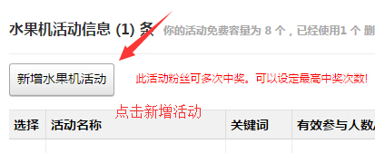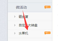 操作步骤:F5或者鼠标右键刷新网页-->在左侧菜单栏找到微活动-->微活动下找到水果机功能-->点击进入新增界面