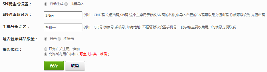 注:内定设置说明,如果只是不想放出这个奖品,直接设置已抽中即可,下方设置默认留空即可 ,不用指定具体中奖人,需要指定具体中奖人务必知道他的opneid !设定指定中奖人,和中奖时间才会在最新中奖记录出现(砸金蛋)