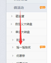 操作步骤:F5或者鼠标右键刷新网页-->在左侧菜单栏找到微活动-->微活动下找到摇一摇抽奖功能-->点击进入新增界面