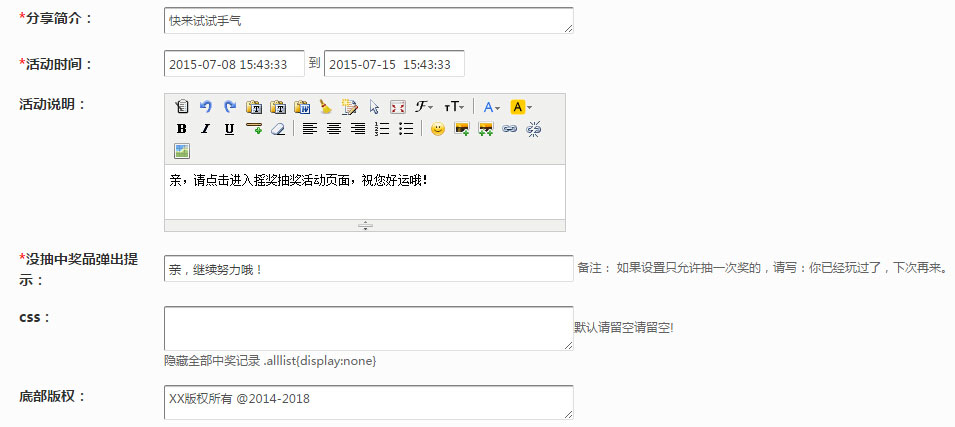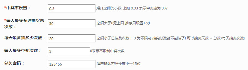 奖项不可设置超过六个,可以少于六个,系统默认六个,少于六个的话其他的不设置全部留空即可