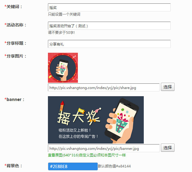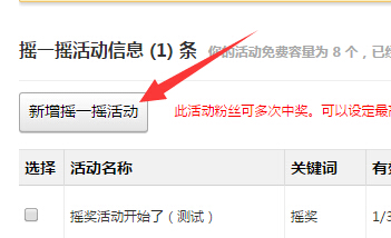 第一步:在微活动下找到摇一摇抽奖功能的按钮,开启摇一摇抽奖功能(摇一摇抽奖功能VIP4才能开启)
