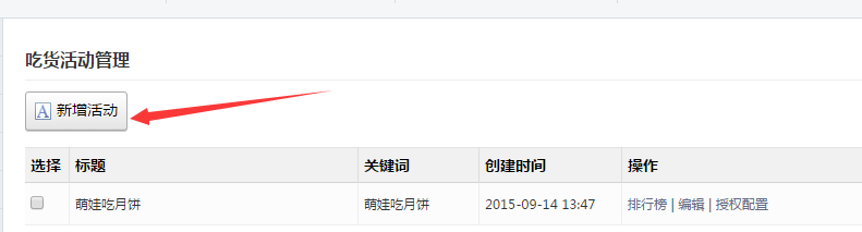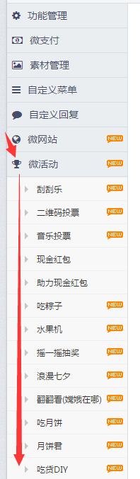 操作步骤:F5或者鼠标右键刷新网页-->在左侧菜单栏找到微活动-->微活动下找到吃货DIY活动功能-->点击进入新增界面