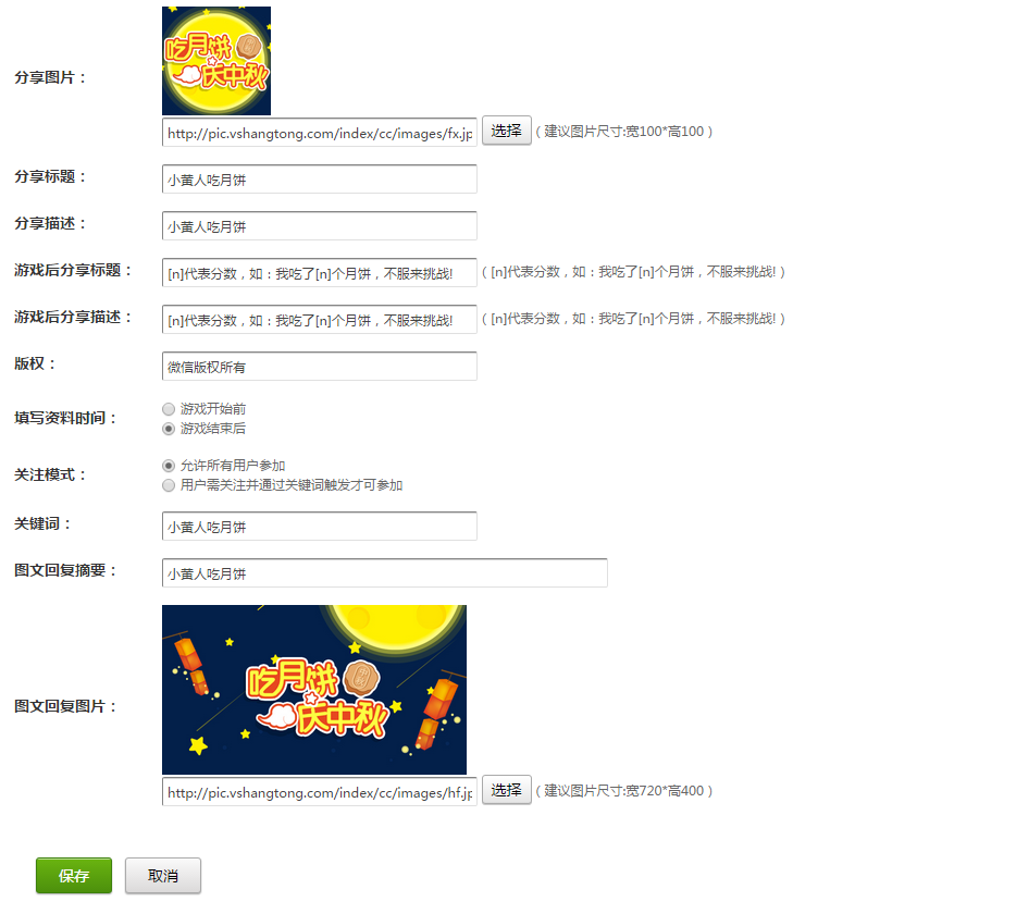 关注模式:允许所有用户参加 (可生成抽奖二维码,活动链接可以直接放自定义菜单)