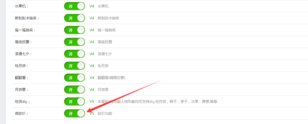 第一步:在微活动下找到微砍价活动的按钮,开启微砍价活动功能