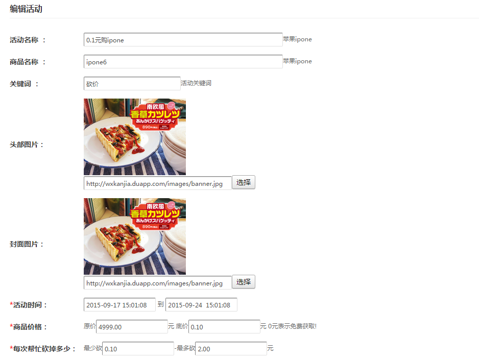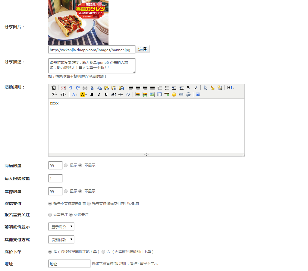 1、编辑微砍价活动开始内容