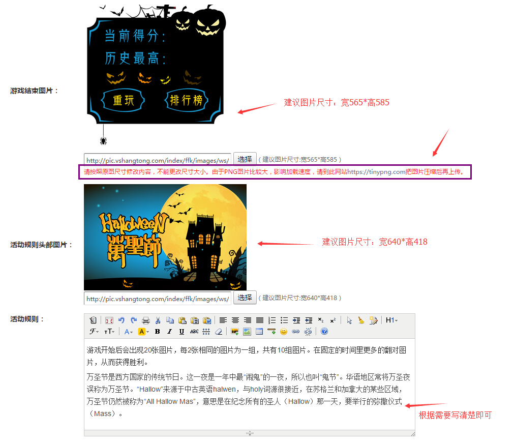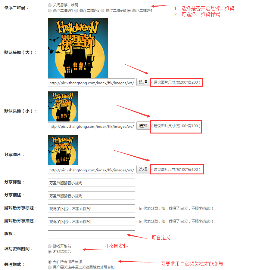 游戏后分享标题、分享描述:玩完游戏之后可显示你获得的分数 ([n]代表你玩的分数)