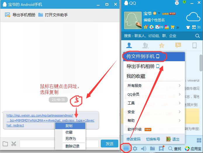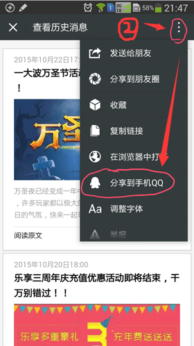 1.打开微信公众号关注页面,点击历史消息 2.点击右上角,选择分享到手机QQ, 3.选择我的电脑