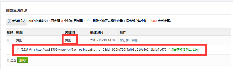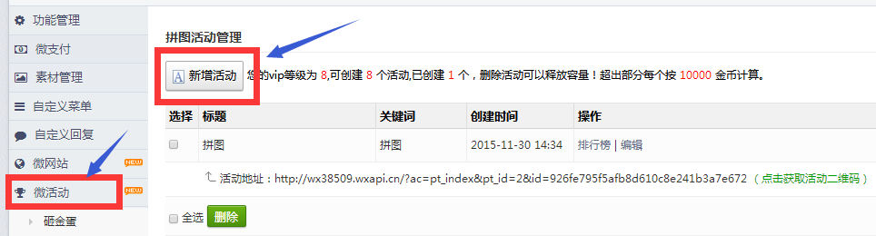 刷新页面,点击左侧功能管理栏——微活动——拼图