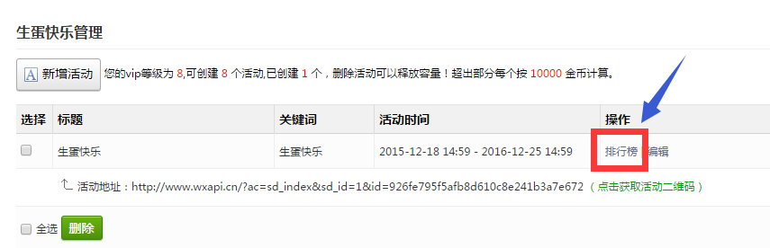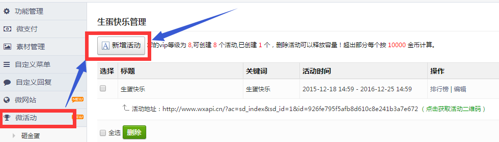 刷新页面,点击左侧功能管理栏——微活动——生蛋快乐