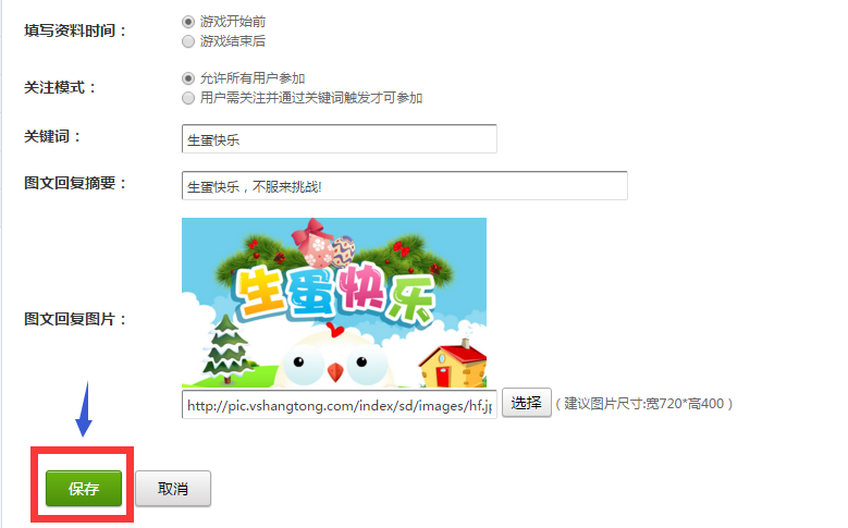 答案:因为你选择了"用户(粉丝)需关注并发送关键词才能参与游戏的模式",这种情况下只能通过触发(发送) 关键词 参与活动