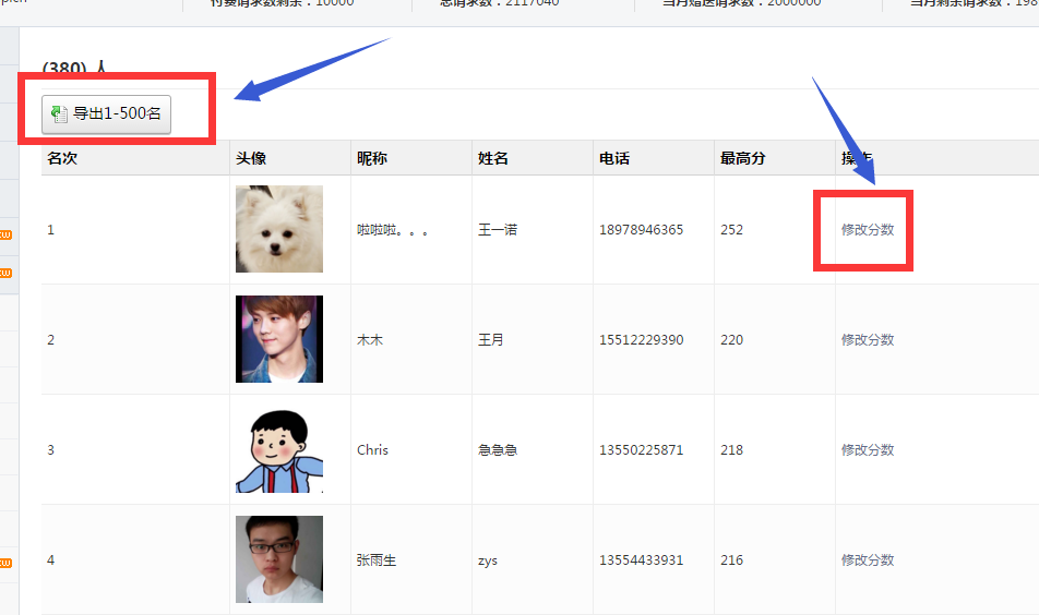 可点击修改粉丝分数,以满足运营需求