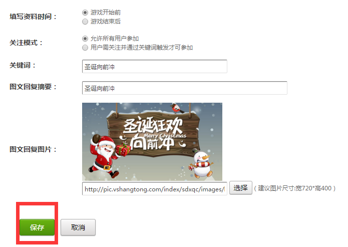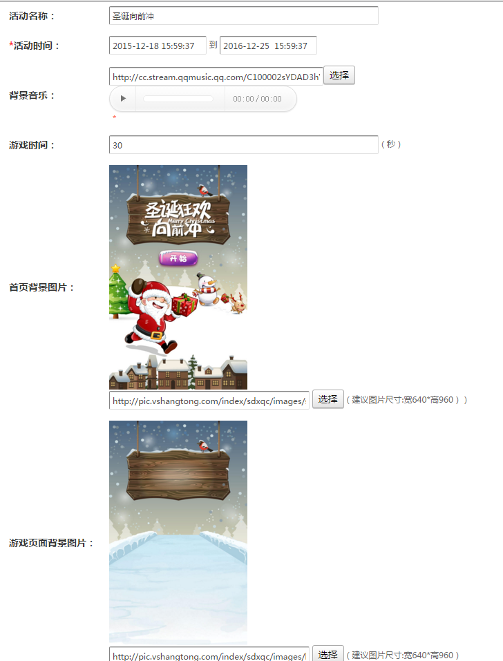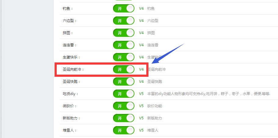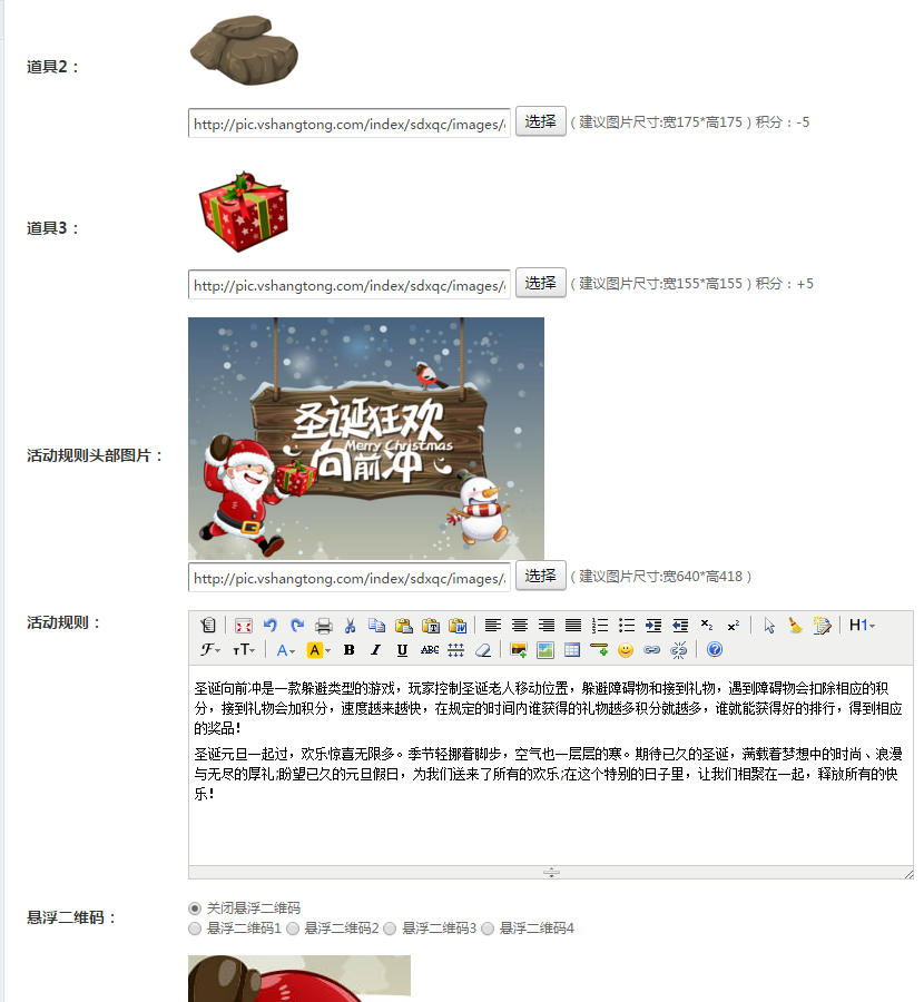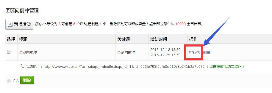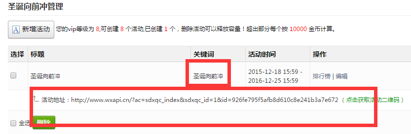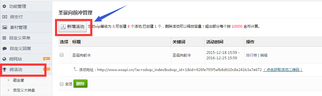 刷新页面,点击左侧功能管理栏——微活动——圣诞向前冲