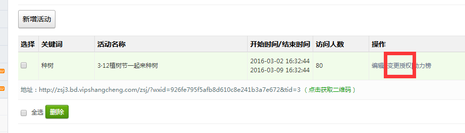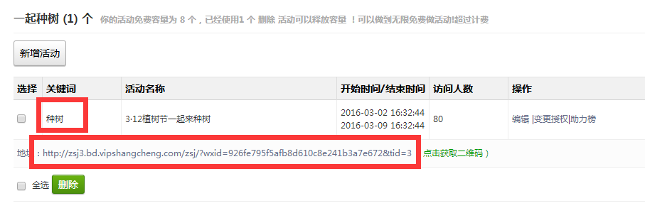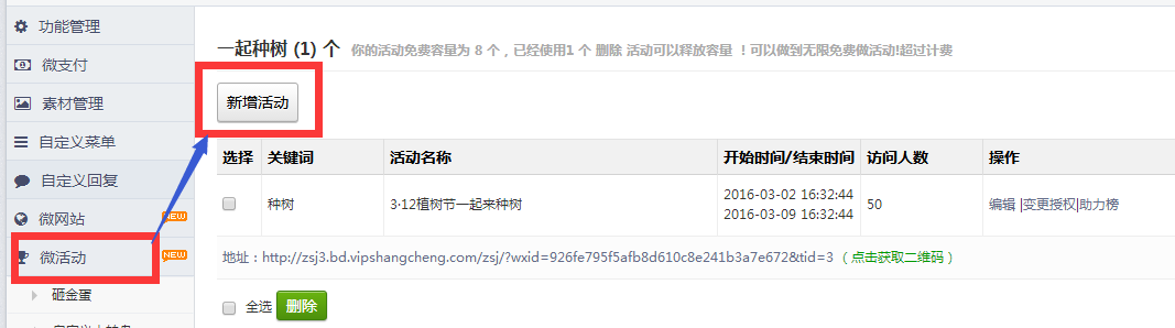 刷新页面,点击左侧功能管理栏——微活动——一起来种树