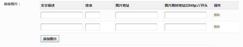 设置商家图片描述,排序,图片地址及跳转地址。
