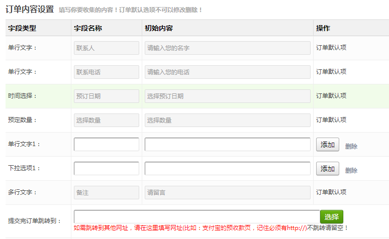 填写需要手机的内容,灰色部分为默认选项不能修改和删除。