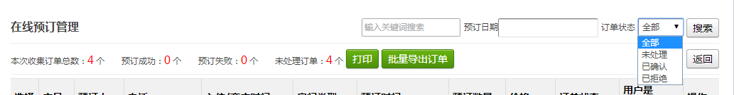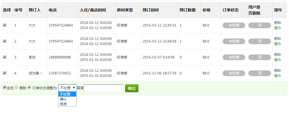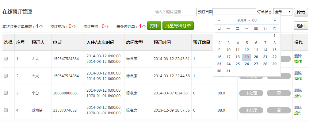 在线订单管理后台,方便商家查看并管理酒店订单。
