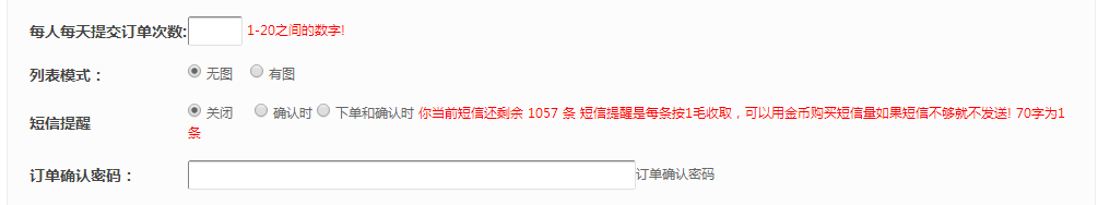 短信收费提醒设置(请确认用金币购买短信后,此功能才生效):