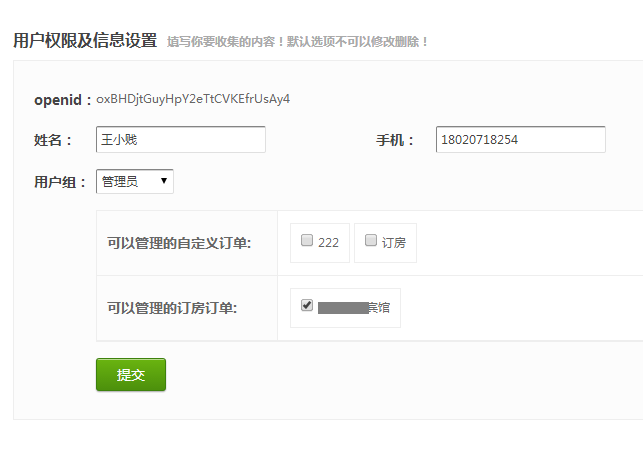在后台“粉丝资料和权限配置”设置自己的店员为管理员,选定酒店就可以在手机端管理订单。【粉丝资料和权限配置教程】
