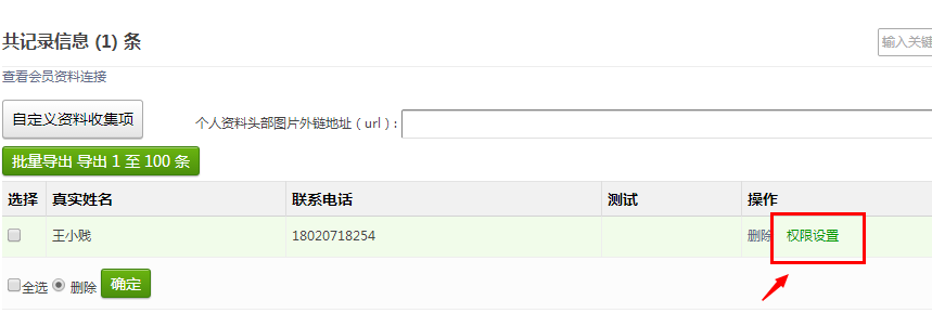 2、选择用户,编辑“权限设置”
