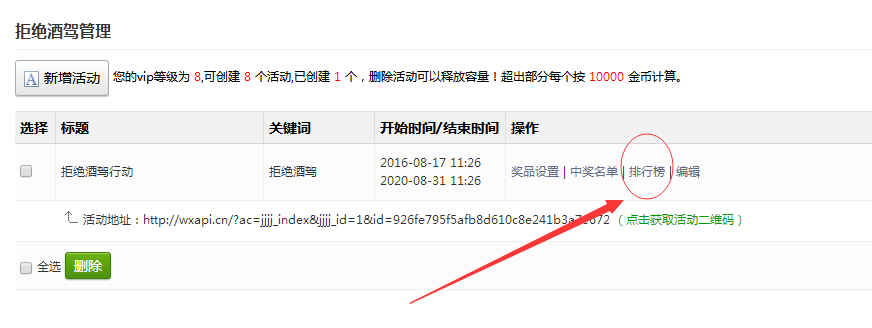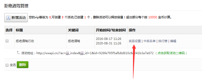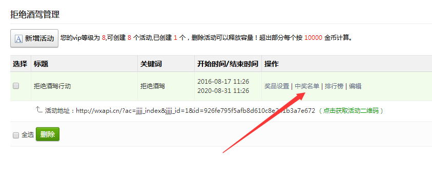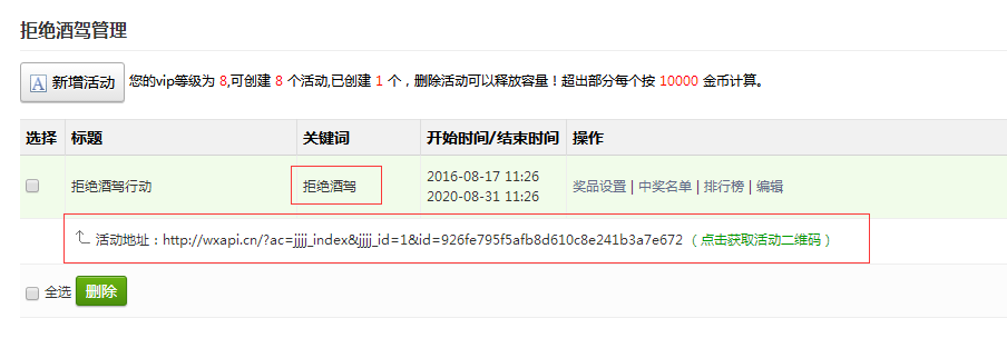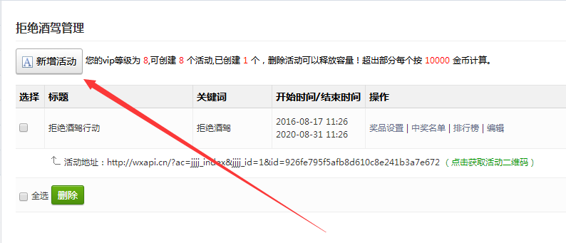 刷新页面,点击左侧功能管理栏——微活动——拒绝酒驾