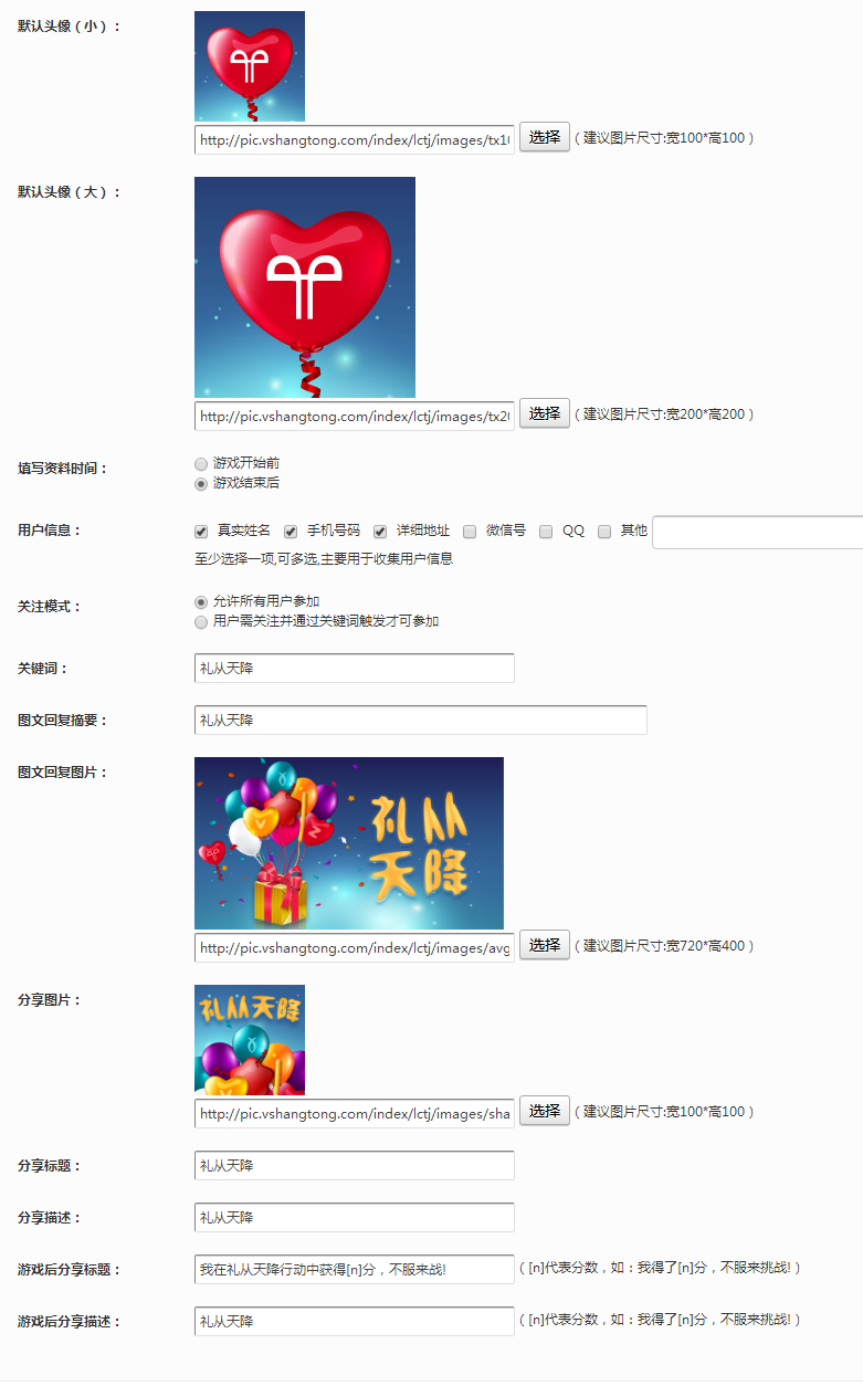 答案:因为你选择了"用户(粉丝)需关注并发送关键词才能参与游戏的模式",这种情况下只能通过触发(发送) 关键词 参与活动