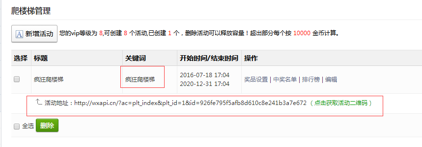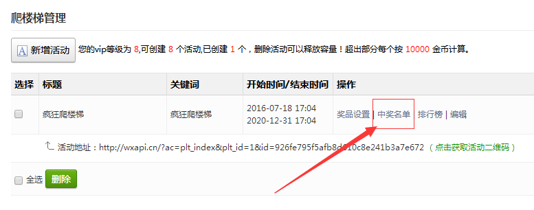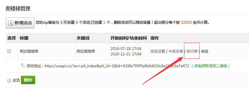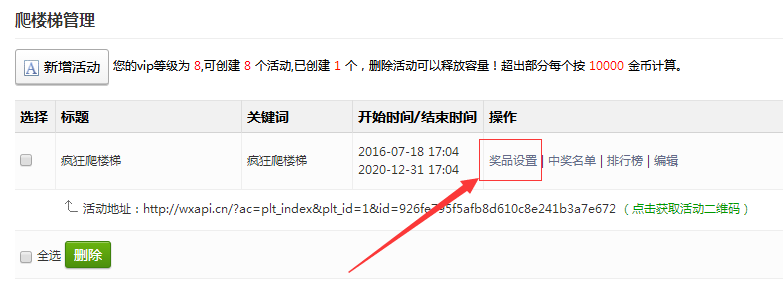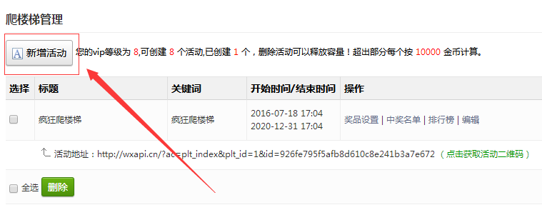刷新页面,点击左侧功能管理栏——微活动——爬楼梯