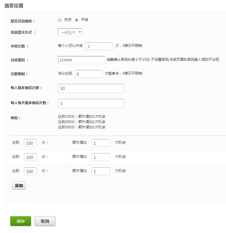 关联积分抽奖设置