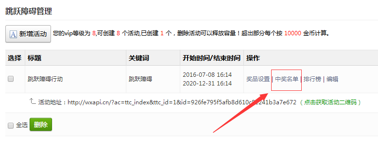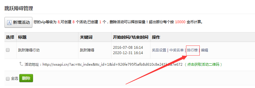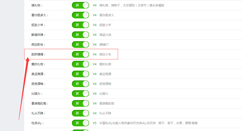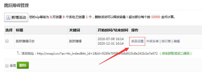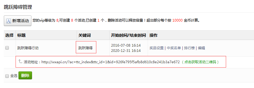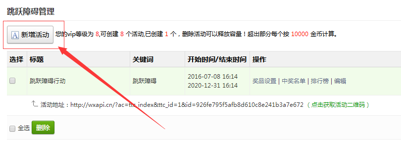 刷新页面,点击左侧功能管理栏——微活动——跳跃障碍