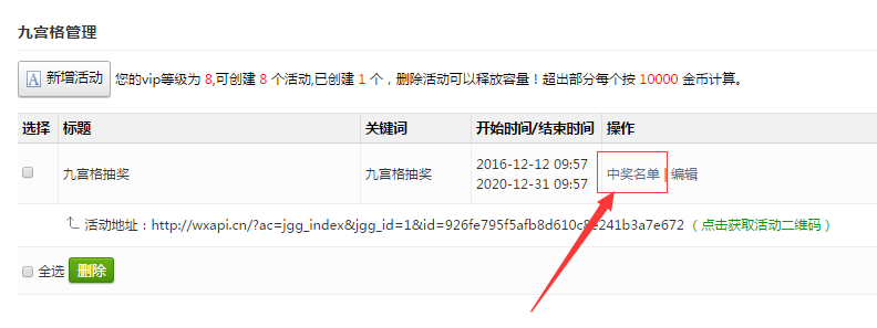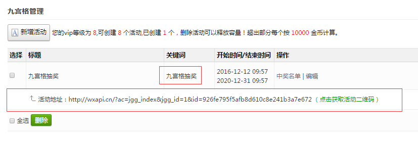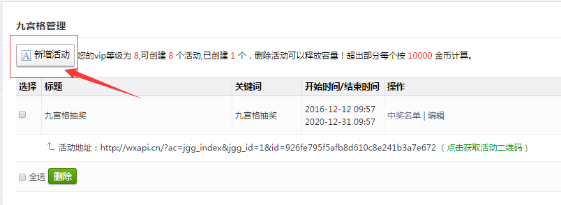刷新页面,点击左侧功能管理栏——微活动——超级九宫格