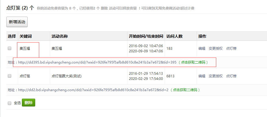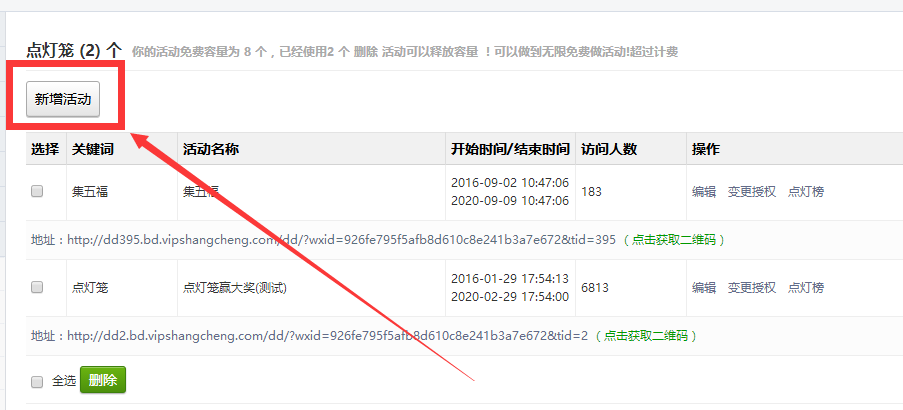 刷新页面,点击左侧功能管理栏——微活动——点灯笼
