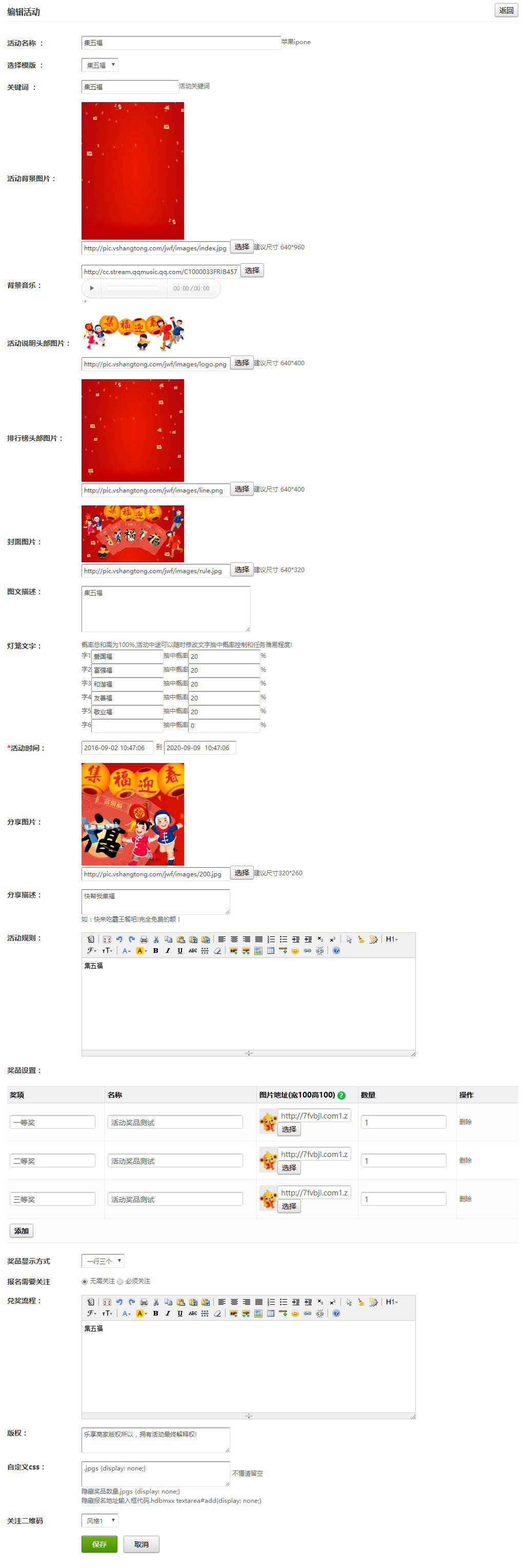 再点击微活动——新年点灯-集五福模板(vip4)