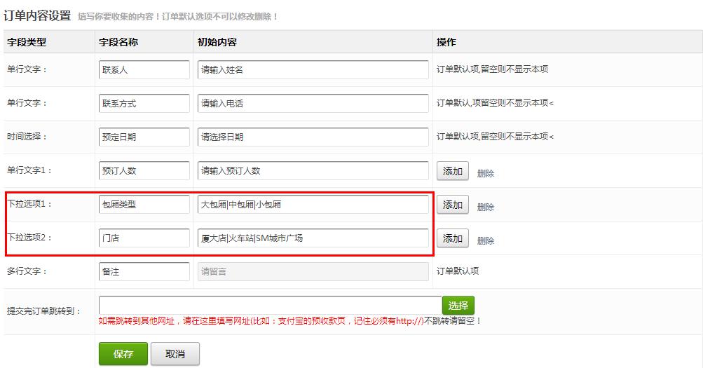 点击“新增在线订单“进入订单编辑页面。填写关键词,预订名称,地址,预定电话。