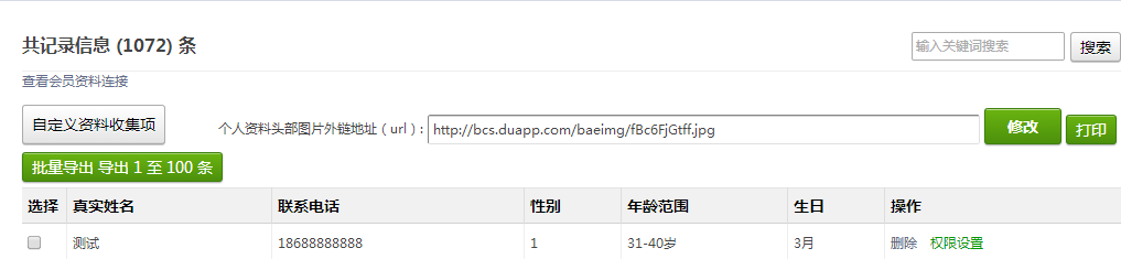 2.点击”粉丝资料管理“,找到自己发送的资料,点击”权限设置“: