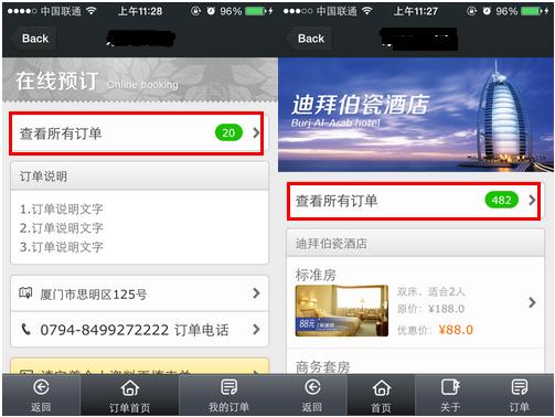 微订单是商家利用平台实现在线预约的一种服务,可以运用于汽车、房产、酒店、医疗、餐饮等一系列行业,给用户的出行办事、购物、消费带来了极大的便利。可以设置自定义在线订单,在线预约,在线报名等,设置邮箱后,提示你有新订单,并且附带订单管理链接,点击链接可以及时处理订单。
